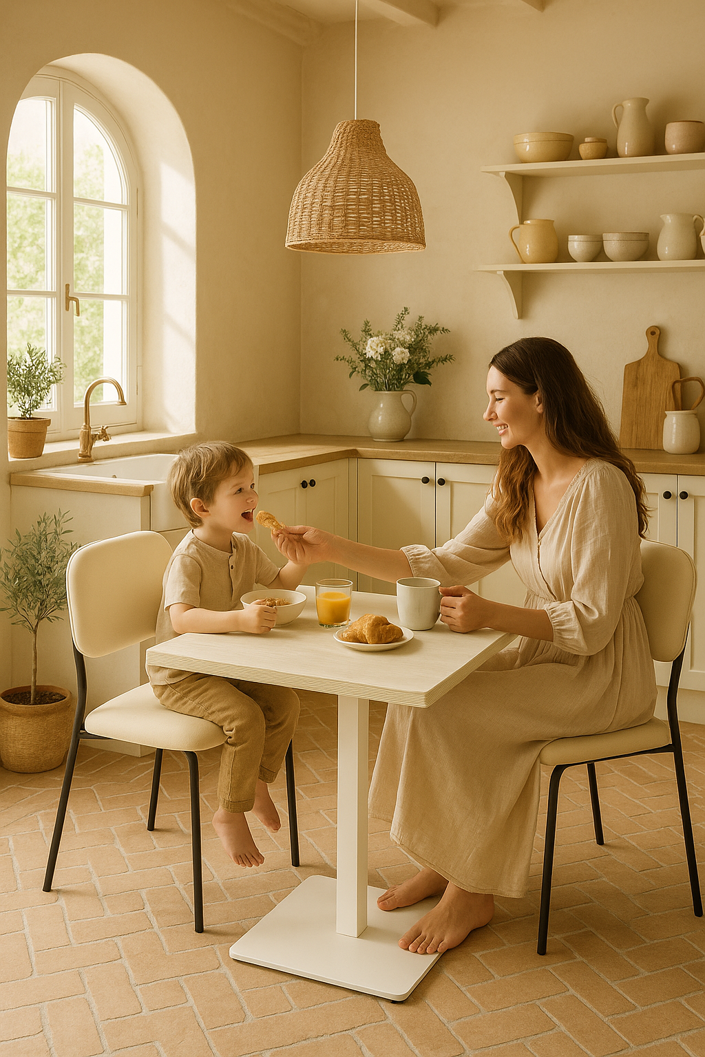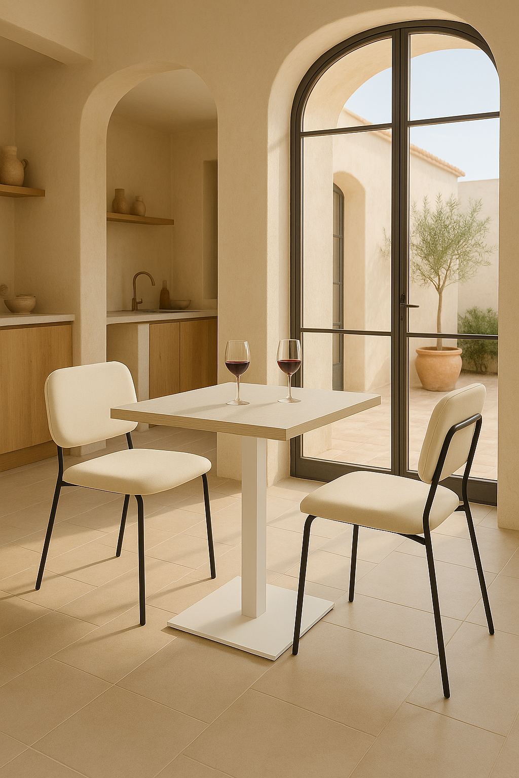 De proporciones equilibradas, su forma cuadrada de 70x70 cm crea un entorno íntimo para desayunos tranquilos, cenas improvisadas o un café compartido. La Mamba es esa mesa versátil que se adapta con facilidad a la vida diaria, sumando calidez sin imponerse.
