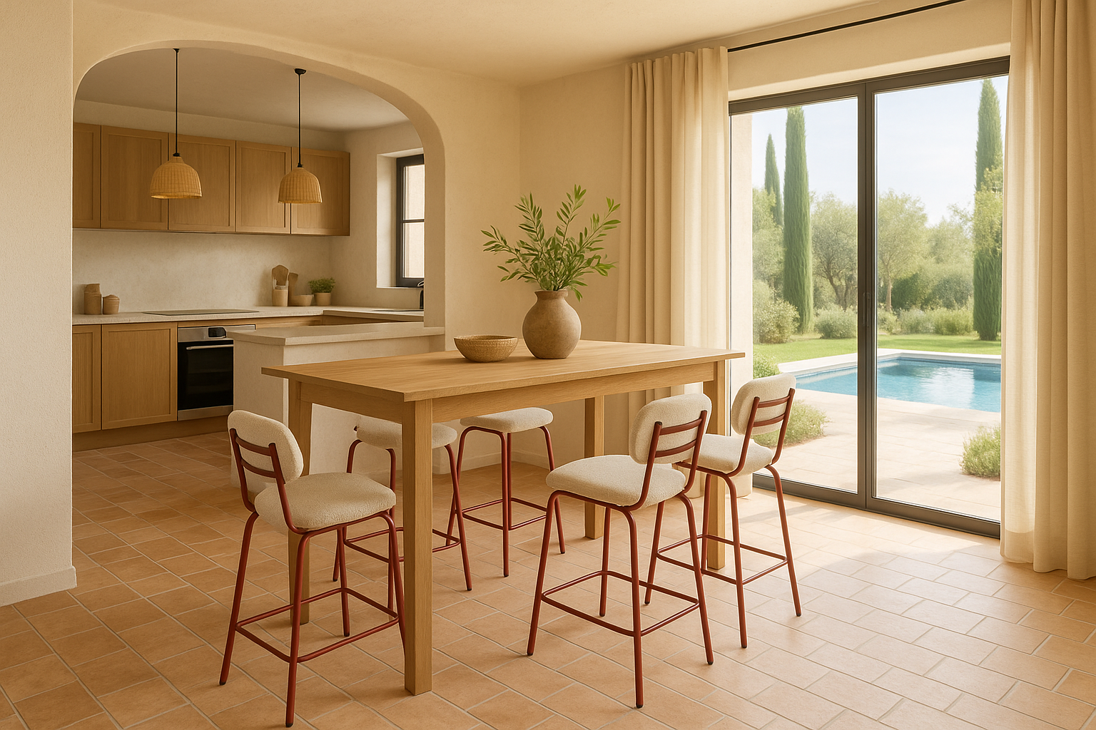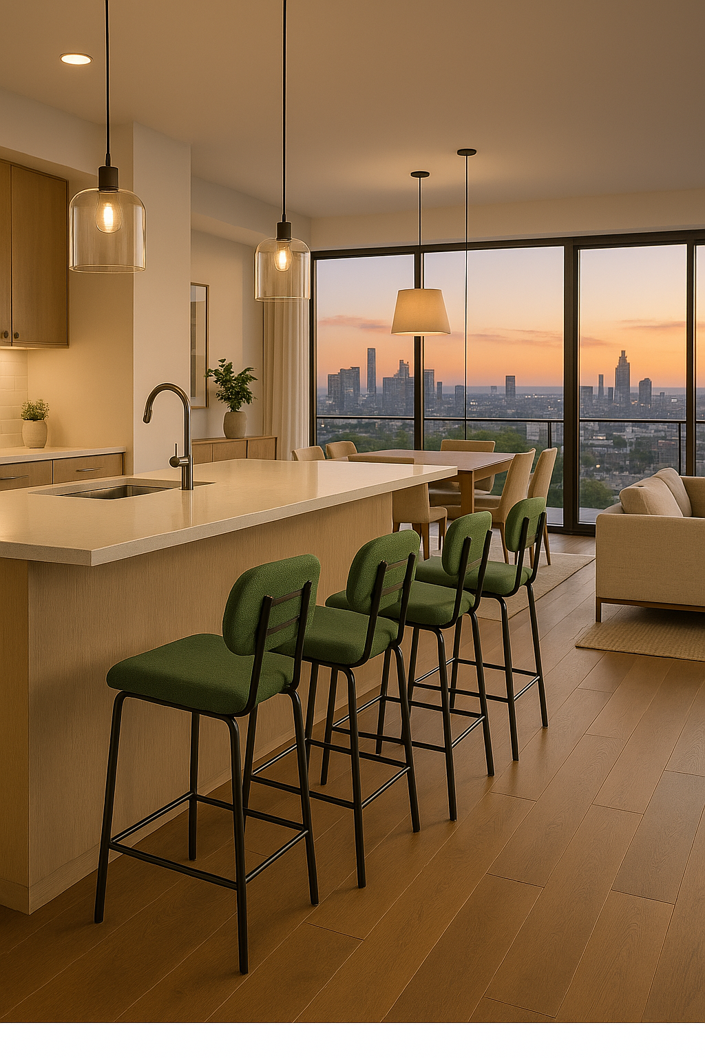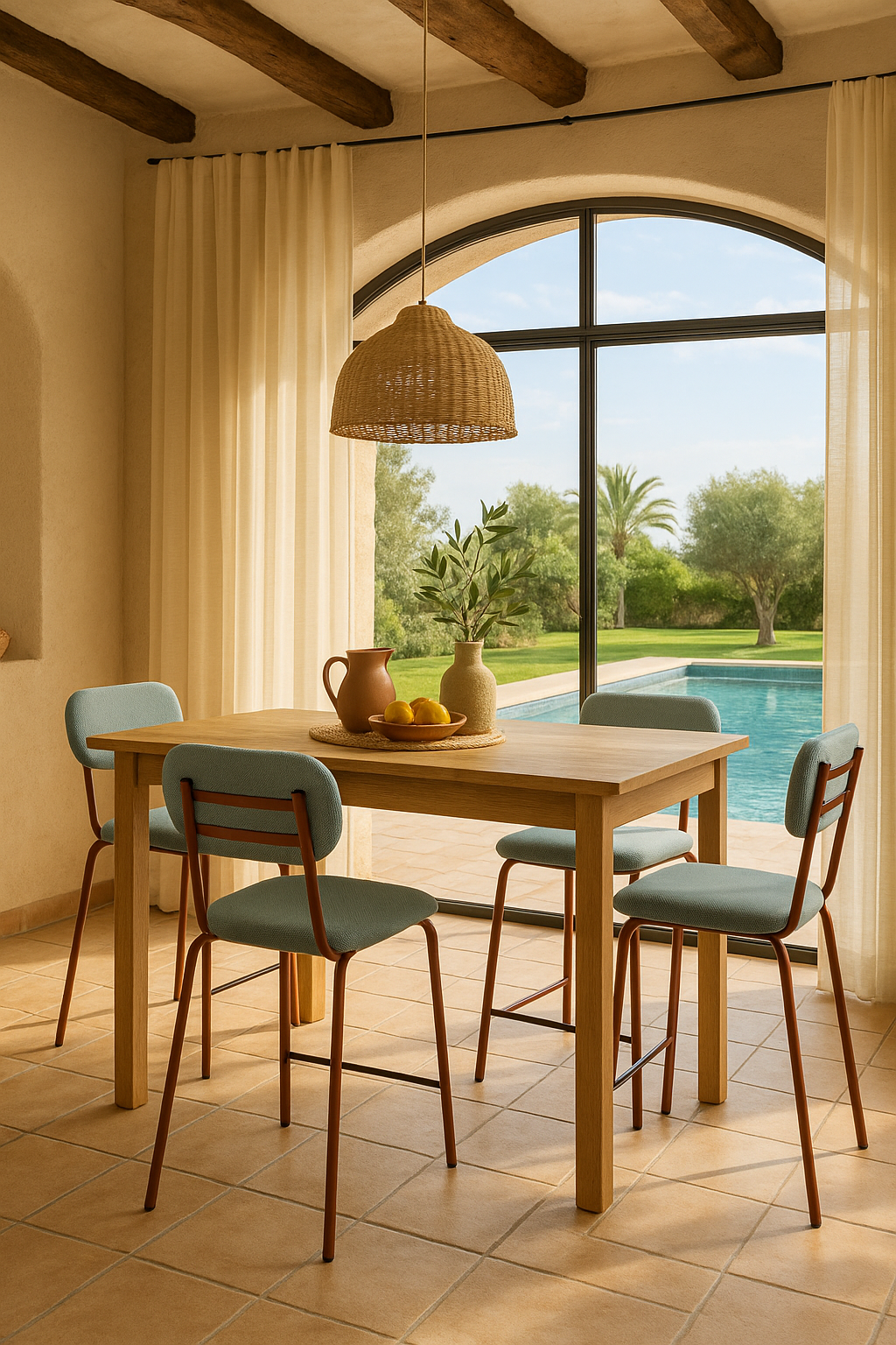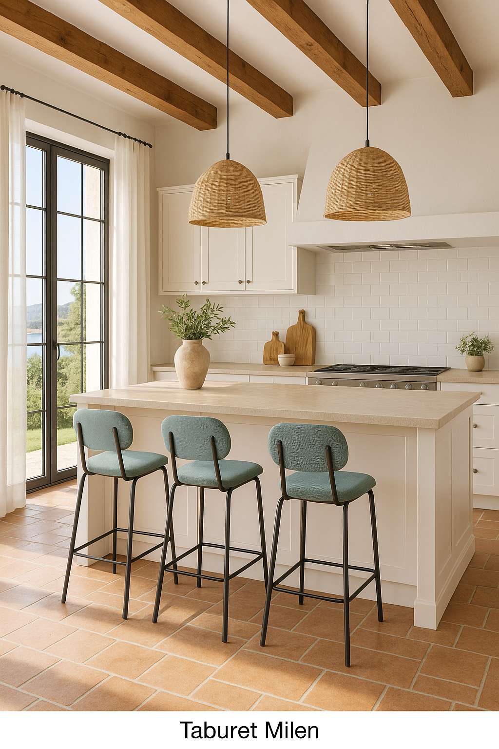La sencillez puede ser cautivadora cuando se viste de detalles sutiles. El taburete Liria eleva la experiencia de sentarse en la cocina o el comedor con un aire fresco y urbano. Su respaldo redondeado y su asiento tapizado en un tono azul verdoso aportan una sensación de calma serena, como una brisa marina que se cuela en espacios modernos. La estructura metálica en negro mate dibuja líneas limpias y sólidas, equilibrando ligereza visual con una presencia robusta. Perfecto para acompañar barras y mesas altas, es una pieza pensada para durar y aportar estilo sin esfuerzo.